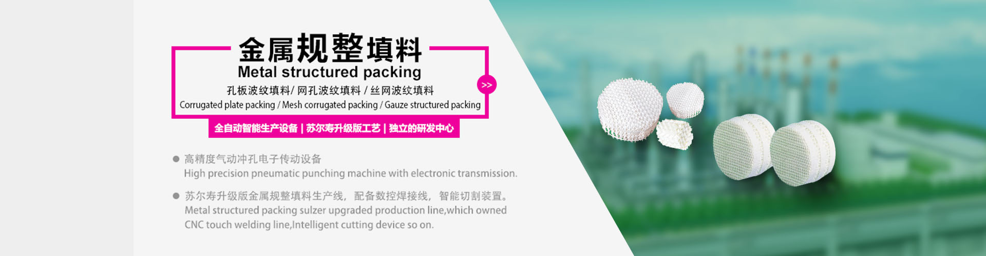 目前工業上應用的規整填料絕大部分為波紋填料,它是由許多波紋薄板組成的圓盤狀填料,波紋與塔軸的傾角有30°和45°兩種,組裝時相鄰兩波紋板反向靠疊。各盤填料垂直裝